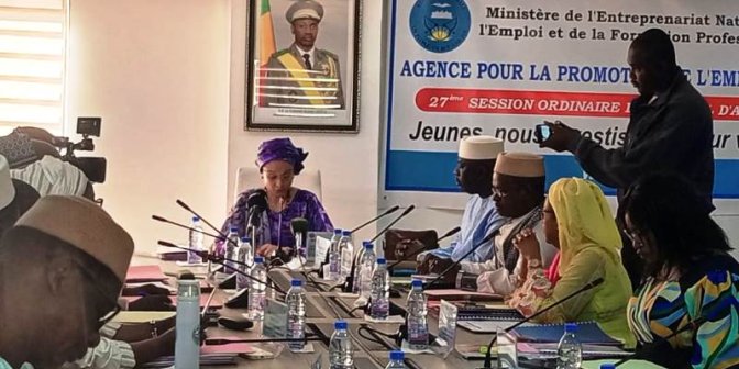 Réunis au CNPM autour de Madame BAGAYOKO Aminata TRAORE, Ministre de l’Entreprenariat national, de l’Emploi et de la Formation professionnelle et Présidente du Conseil d’Administration, ils ont examiné et approuvé plusieurs documents dont le Procès-verbal de la 26e session ordinaire tenue le 07 février 2023 et le point d’exécution des recommandations issues de ladite session, le rapport d’activités de 2023, le rapport d’exécution du budget 2023, le plan d’actions pour 2024 et son budget prévisionnel, le rapport d’exécution du contrat annuel de performance 2023 et du projet de contrat annuel 2024, une note d’information sur le Projet « GO GREEN , une note d’information sur l’Avenant à la convention de délégation de fonds et la mise en œuvre (CDFMO) dans le cadre du partenariat APEJ / LUX DEV, une note d’information sur les nouveaux Espaces d’Orientation Jeunesse dans la Région de Gao puis une note d’information sur l’état de mise en œuvre de la stratégie de mobilisation des ressources.