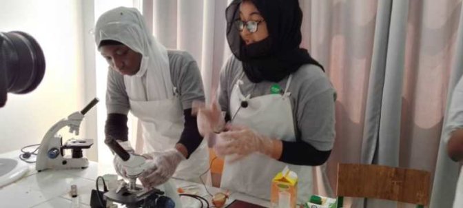 Tout au long de cette journée porte ouverte, les élèves étaient à l’œuvre. Ils ont reflété le travail sérieux, varié et soutenu que les profs font en amont, mais ce sont eux qui sont les principaux protagonistes. Ils ont fait des exposés sur la formule développée de Glucose, l’observation cellulaire à partir d’épiderme d’oignon, direction de la lumière, l’expérience sur le titrage (il s’agit de trouver la présence de vitamine C dans un jus de fruit vendu sur la place de Bamako), l’expérience de la Poulie, le circuit électrique et la formule de la vitesse.