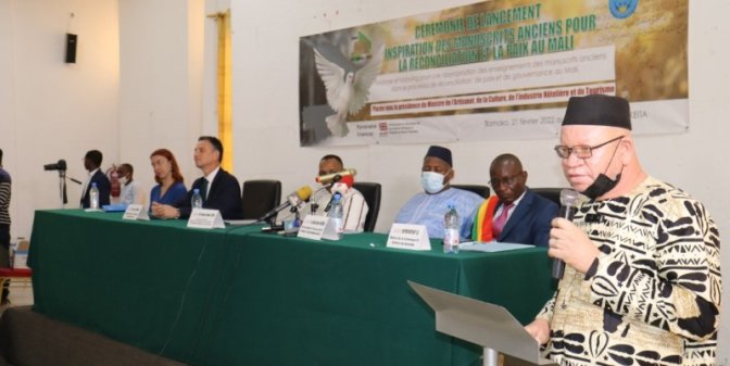 Le lundi 21 février 2022, Hamane Demba Cissé, Secrétaire général du Ministère de l’Artisanat, de la Culture, de l’industrie Hôtelière et du Tourisme, a présidé la cérémonie de lancement du projet « Inspiration des manuscrits anciens pour la réconciliation et la paix ». Pour la circonstance, il avait à ses côtés l’Ambassadeur de Grande Bretagne et de l’Irlande du Nord au Mali.