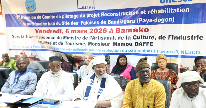 << 173 maisons reconstruites, permettant à des familles de retrouver un refuge sûr ; 172 greniers traditionnels restaurés, garants de la sécurité alimentaire et de la continuité des traditions agricoles ; 9 Togunas rénovées, lieux symboliques essentiels au dialogue communautaire et à la cohésion sociale>>. C’est en quelque sorte le bilan du « Projet de reconstruction et de réhabilitation du patrimoine bâti du Site des Falaises de Bandiagara », qui a été présenté le 6 mars 2026, dans la salle de conférence du ministère en charge de la culture. C’était lors de la 3 ème réunion du Comité de pilotage Projet de reconstruction et de réhabilitation du patrimoine bâti du Site des Falaises de Bandiagara".