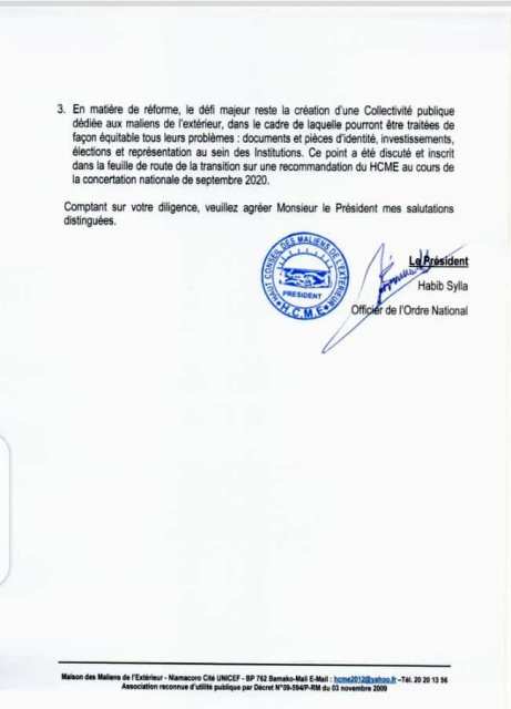 Le Président de la Transition et le Premier Ministre, doivent rapidement trouver la méthode pour demander au Ministre de surseoir dans les plus brefs délais, à son idée qui va davantage diviser les maliens établis à l’étranger.