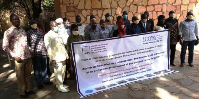 Dans le cadre du projet « Sensibilisation et désinfection des musées du Mali contre la pandémie de la COVID-19 : Cas de six musées à Bamako, Sikasso, Ségou, Tombouctou et Gao » du Comité national ICOM-Mali, le 10 décembre 2020, le Musée national du Mali, a abrité l’atelier de formation des responsables des musées sur la prévention et la protection du personnel et des visiteurs contre la COVID-19.