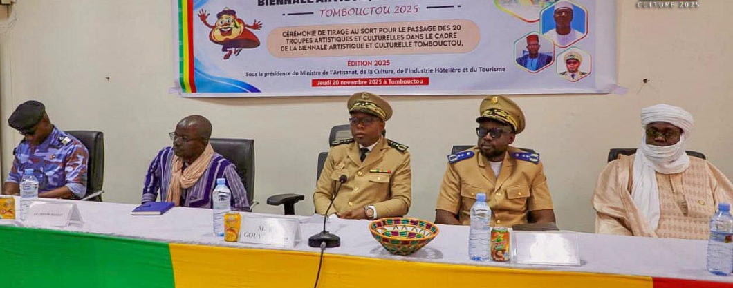 La Biennale Artistique et culturelle Tombouctou 2025, aura lieu du 18 au 28 décembre 2025. En prélude à cet événement national de première importance, le jeudi 20 novembre 2025, la salle de Conférence de la Chambre de Commerce et d’Industrie de Tombouctou, a abrité la cérémonie officielle de tirage au sort déterminant l’ordre de passage des vingt troupes régionales (19 régions et du District de Bamako).