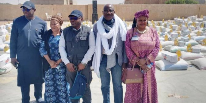 L’objectif de cette visite était de distribuer des vivres aux déplacés et aux couches les plus vulnérables de la cité des Askia et de Menaka.