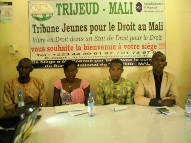 Ce vaste projet piloté par la Tribune Jeunes pour le Droit au Mali (Trijeud-Mali) a été financé par le Fond National pour la démocratie (NED). Selon le président de la Trijeud-Mali, M. Abdourhamane Haidara, ce projet consistait à sensibiliser les jeunes sur les questions de droits de l’homme. Face aux enjeux de la paix et la réconciliation nationale, pour lui, « une lutte efficiente contre l’impunité et la violation des droits de l’homme est une nécessité en vue de contribuer à la prise en compte des questions de droits de l’homme en période post-crise ».