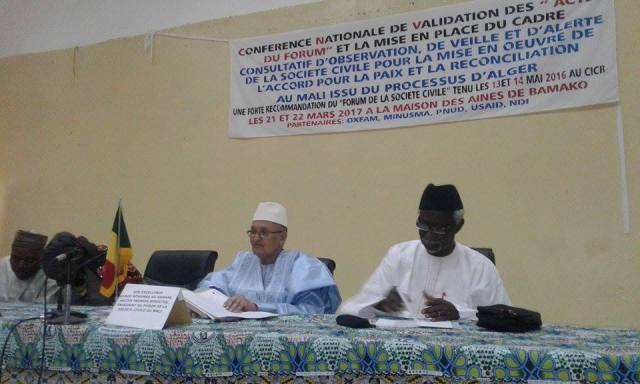 En vue de contribuer efficacement à la mise en œuvre de l’accord pour la paix et la réconciliation au Mali, la société civile a tenu du 21 au 22 mars 2017 à la Maison des Ainés de Bamako la conférence nationale de validation des actes de son Forum de mai 2016. Ce fut une aubaine particulière pour l’ensemble des composantes de la société civile...