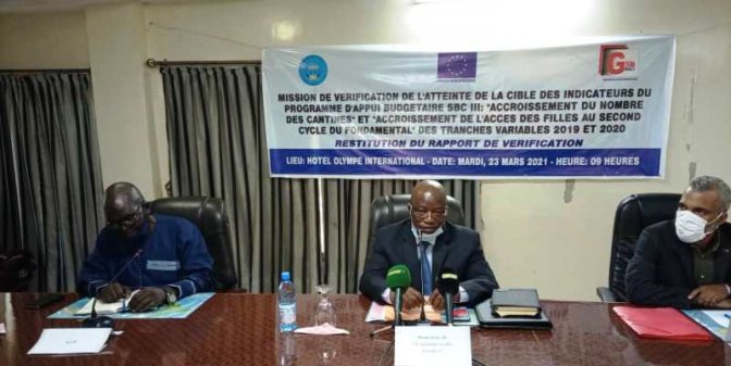 Selon lui, l’objectif général de la mission était de fournir à la Délégation de l’Union européenne un rapport indépendant de vérification de l’atteinte de la cible des indicateurs, en rapport avec l’accroissement du taux de couverture nationale en cantines scolaires de 10% pour l’année académique 2019-2020 et en rapport avec l’accroissement du TBA des filles au second cycle de l’enseignement fondamental de 2,2 points de pourcentages au minimum.