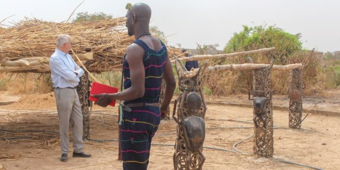 Il a aussi été bien inspiré en donnant le nom du célèbre artiste malien Abdoulaye Konaté à un Togouna. Abdoulaye Konaté est sonrhai. Le Togouna est une pratique chez ses cousins dogons. Donc, comprenez qu’ici, nous sommes en plein hommage à une des valeurs les plus sûrs du Mali : « le sinangouya » que nous appelons de façon triviale « la parenté à plaisanterie », à défaut de trouver mieux.