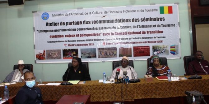 Les membres du Conseil National de Transition, notamment les membres de la Commission Education, Culture et Nouvelles technologies, au cours d’un atelier organisé par le Ministère de l’Artisanat, de la Culture, de l’Industrie hôtelière et du Tourisme, ont été édifiés sur les recommandations des Séminaires « Émergence pour une vision concertée des secteurs de la culture, de l’artisanat et du Tourisme ». C’était le 14 septembre 2021, dans la Salle Wa Kamissoko du CICB.